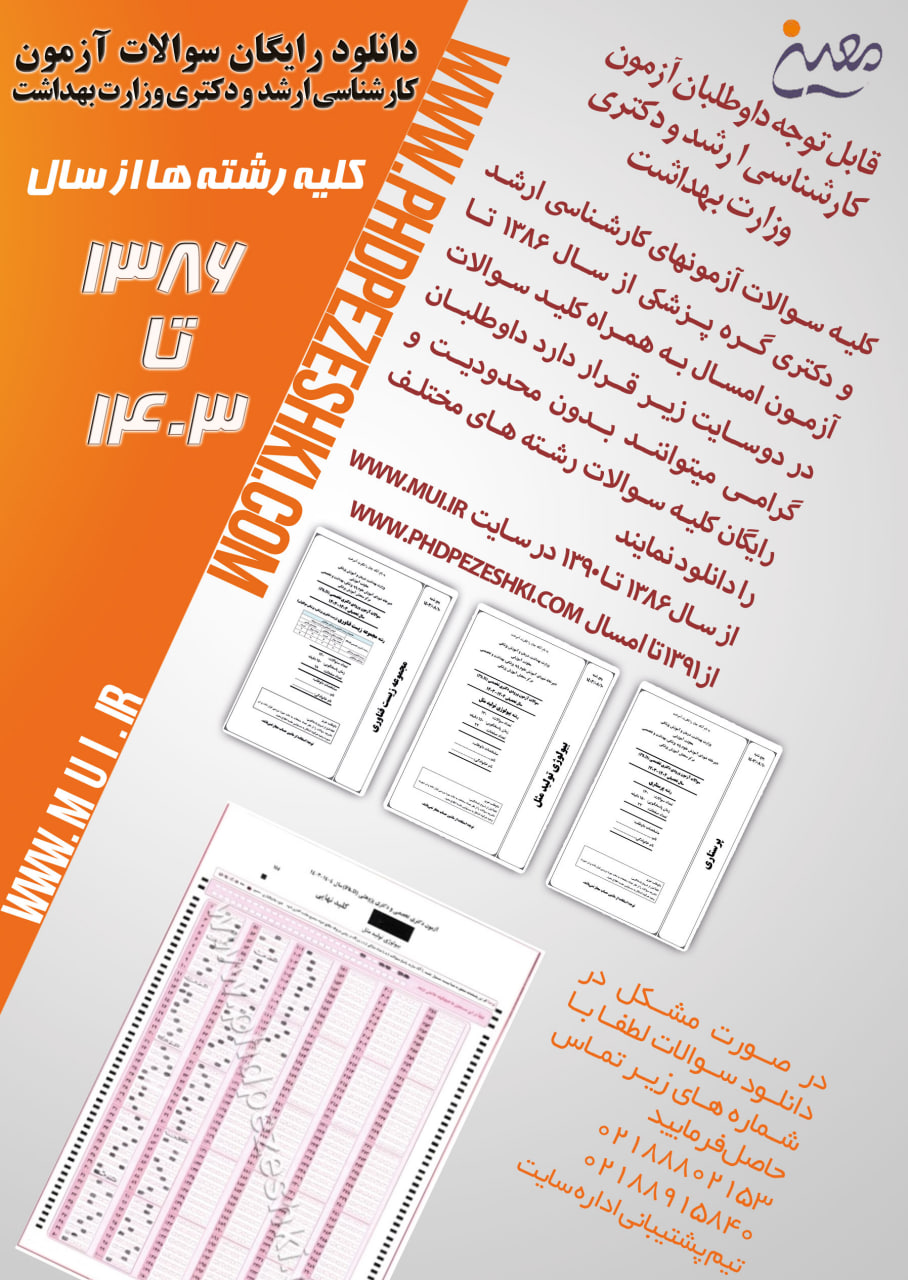 هم اکنون سوالات آزمون کارشناسی ارشد و دکتری تخصصی رشته های گروه پزشکی وزارت بهداشت سال ۱۴۰۴-۱۴۰۳ در این سایت قابل دانلود میباشد .
